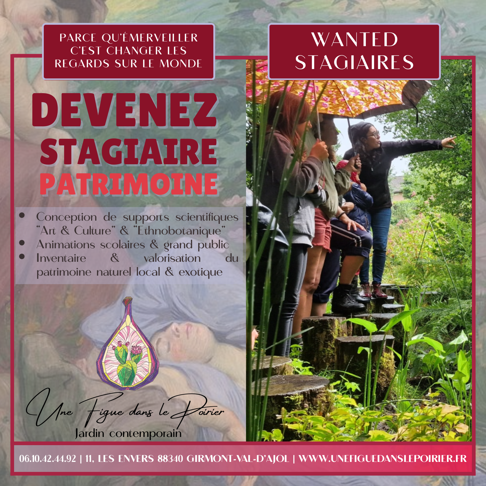📩 Candidatures (CV & lettre de motivation) à envoyer par mail : asso[@]unefiguedanslepoirier.fr
